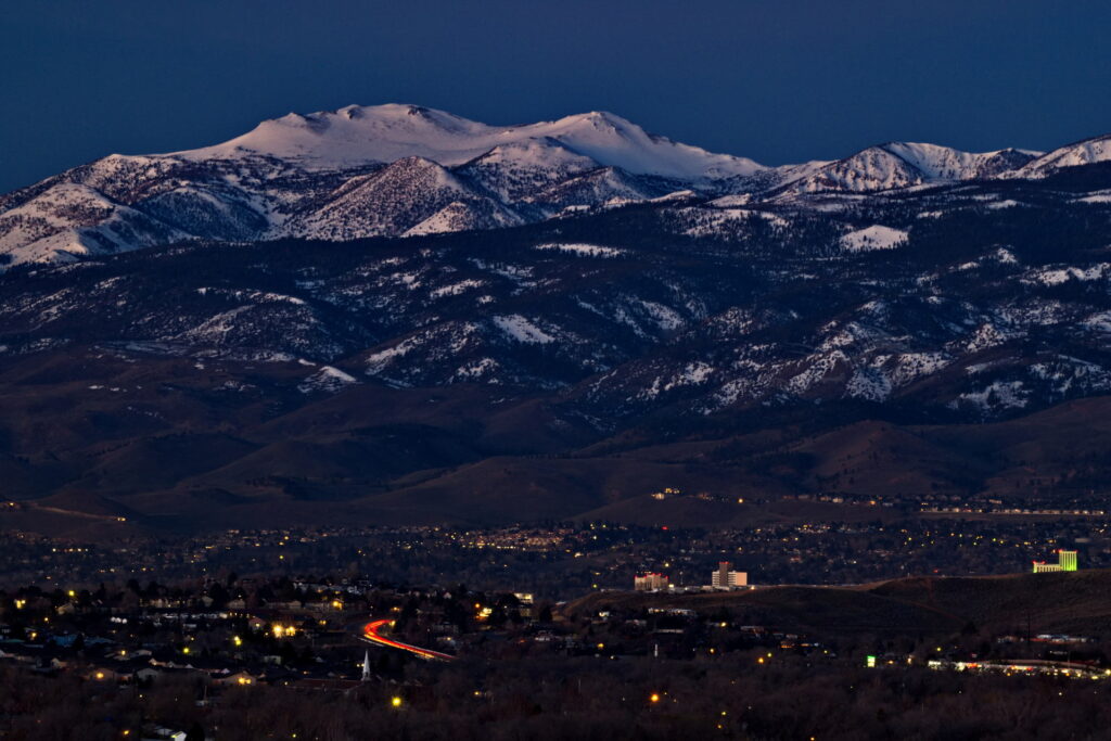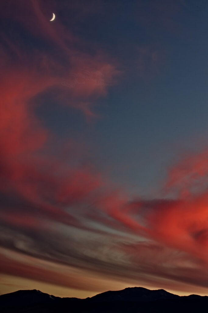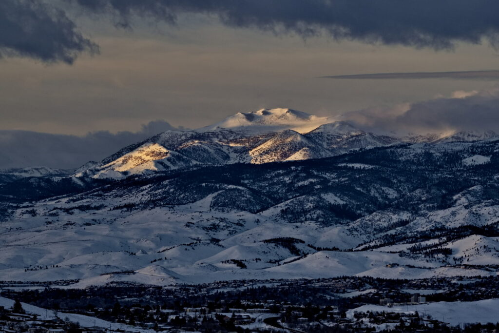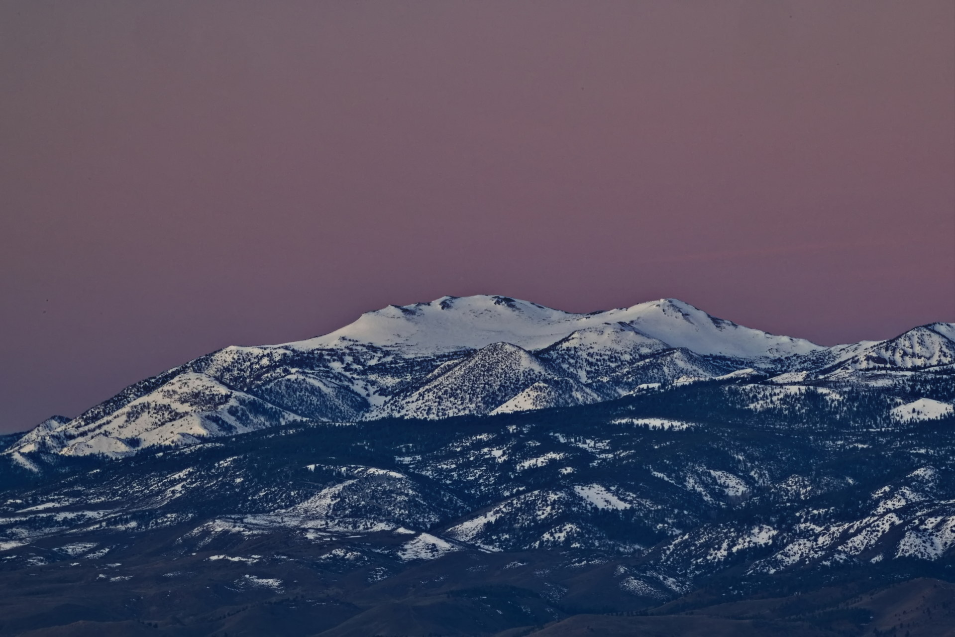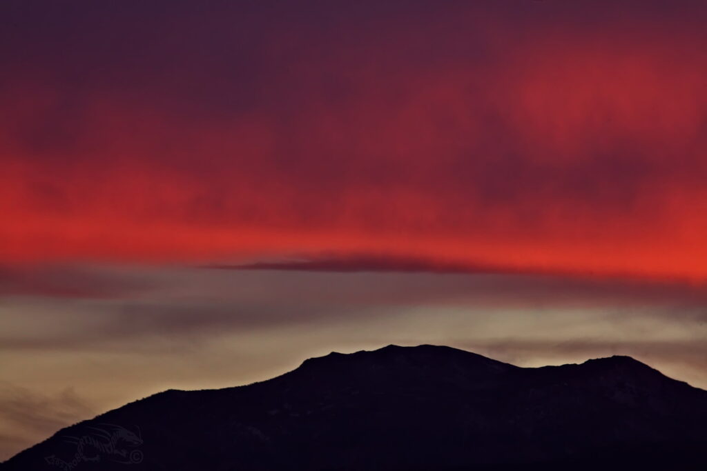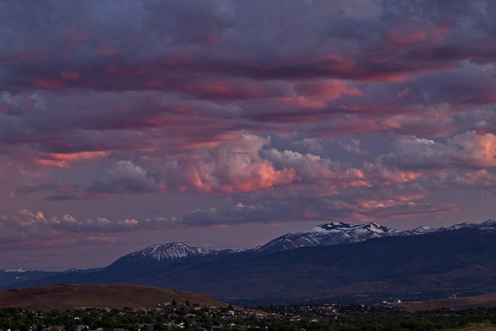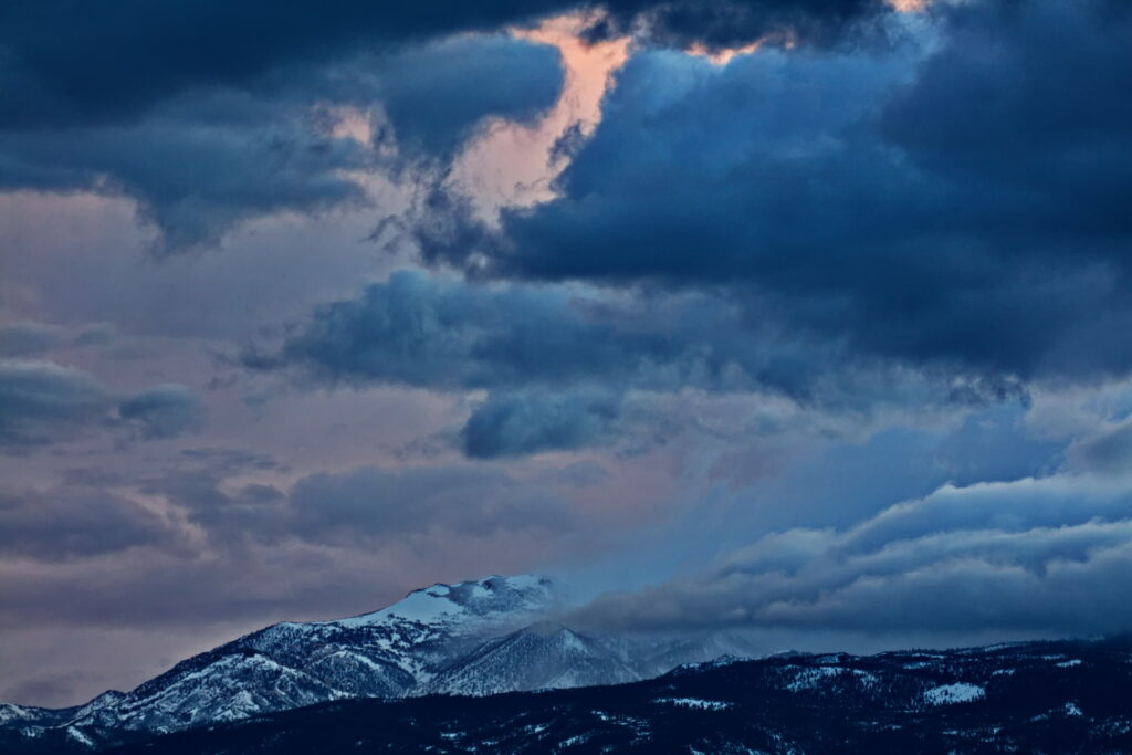 Above: Rose’s face (summit of Mt. Rose) against a purple to lilac sky. Such dawn color pops only when the air is exceptionally clear. It lasts maybe two minutes.