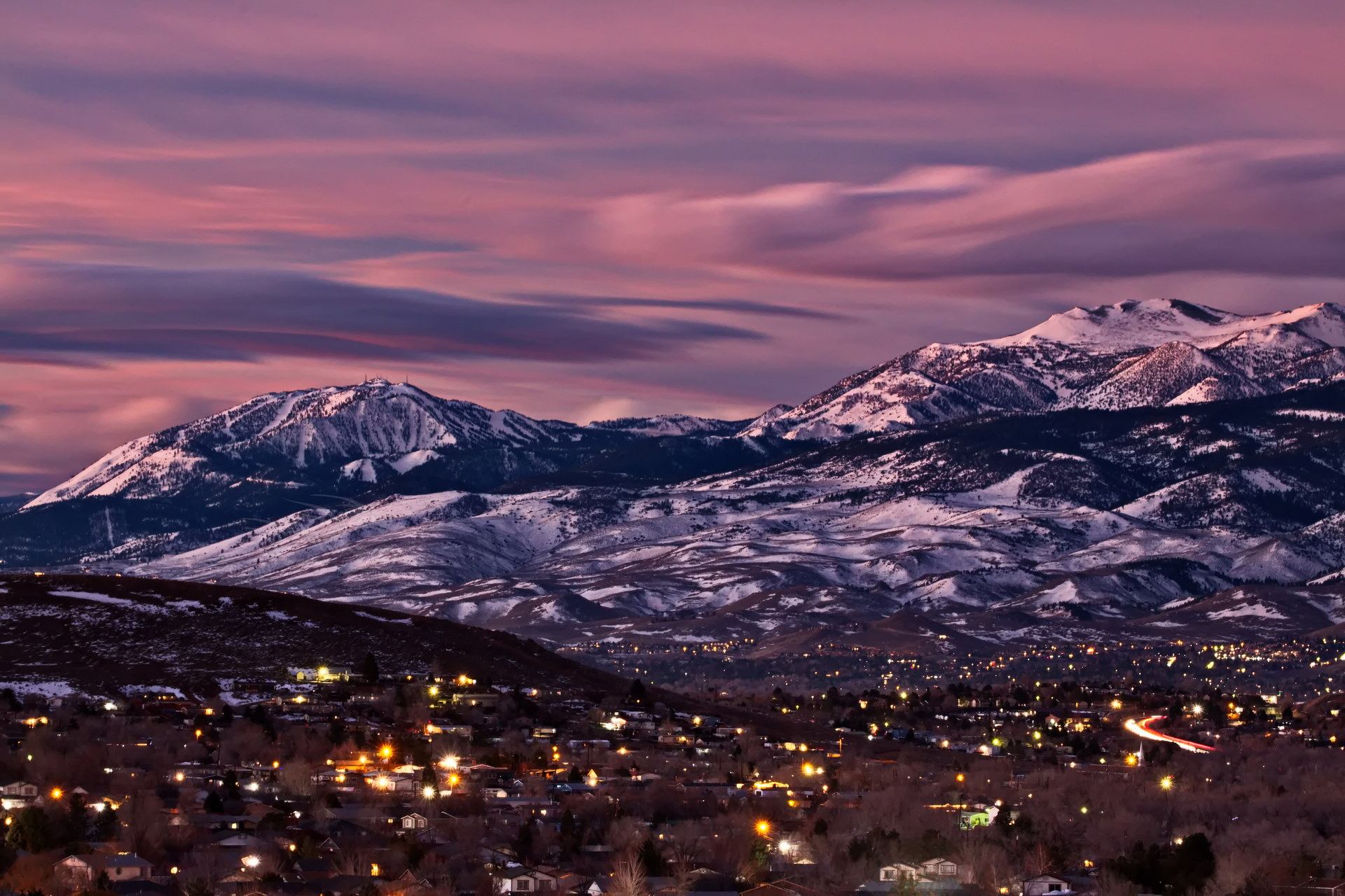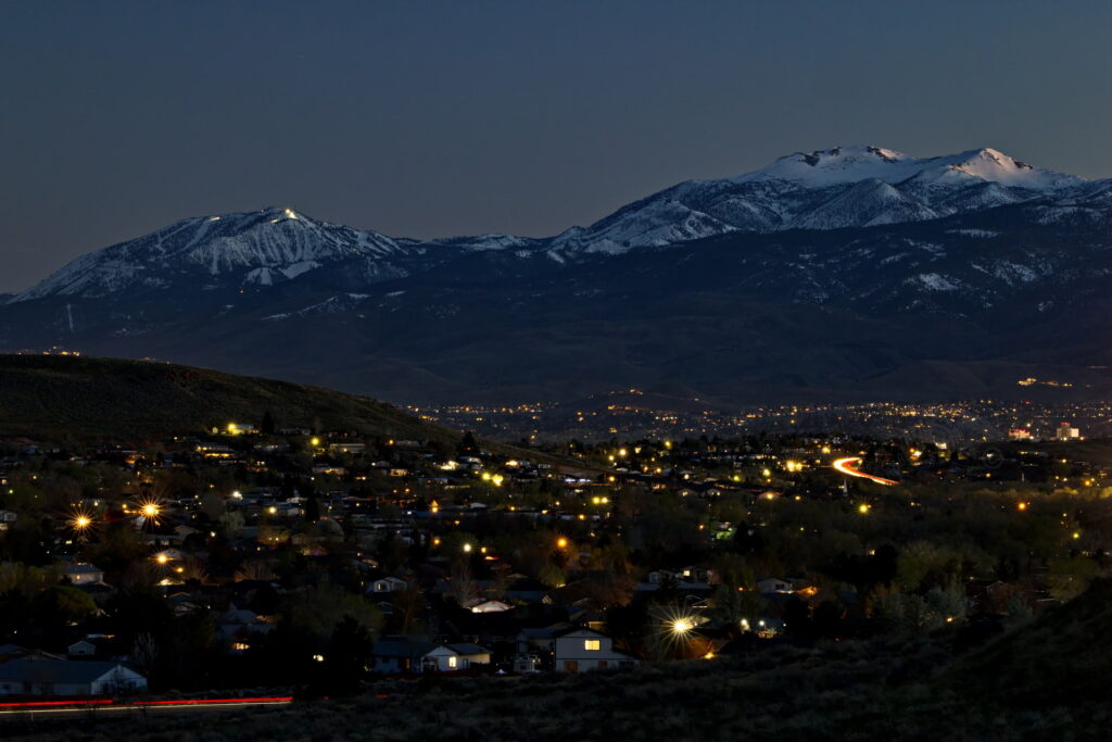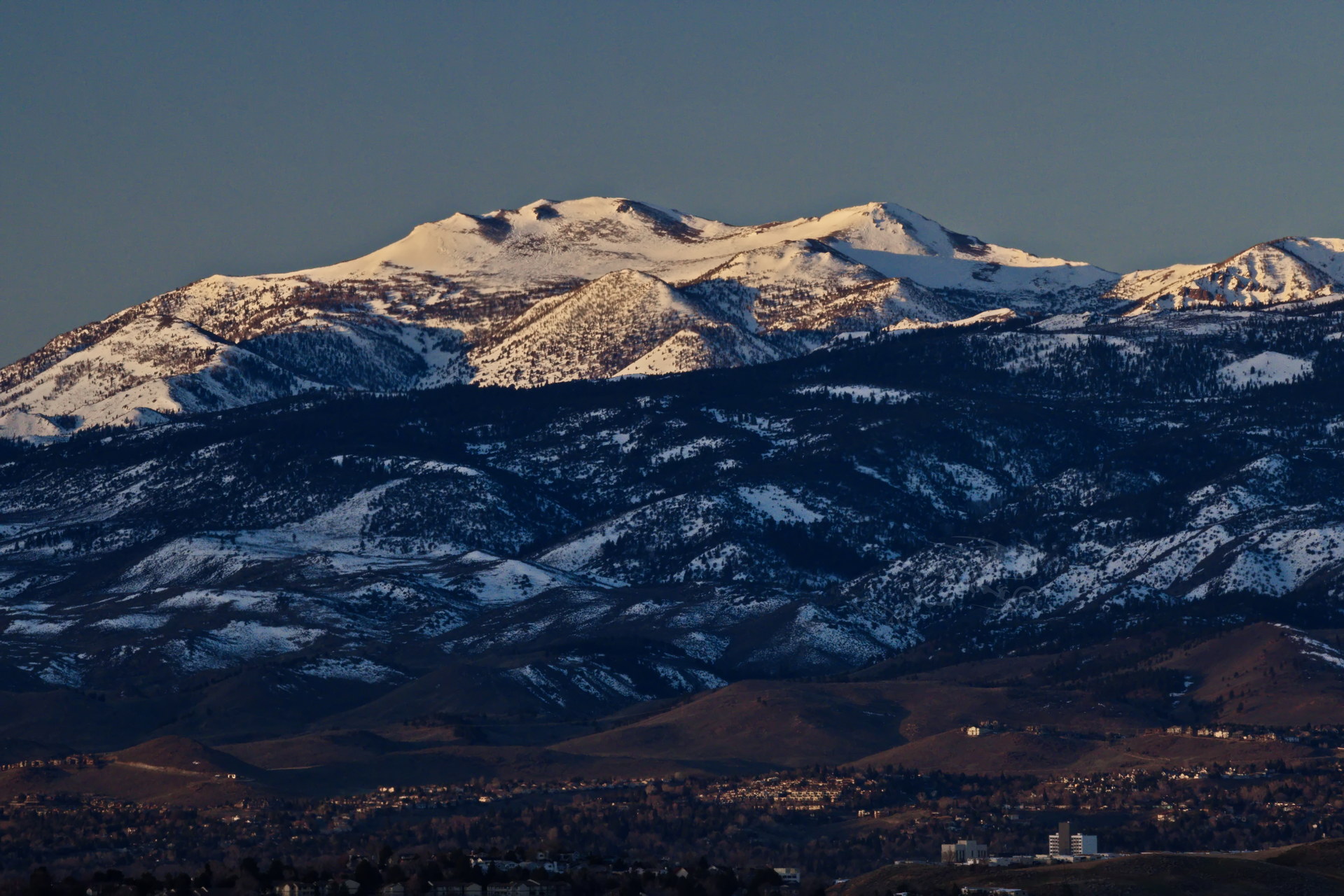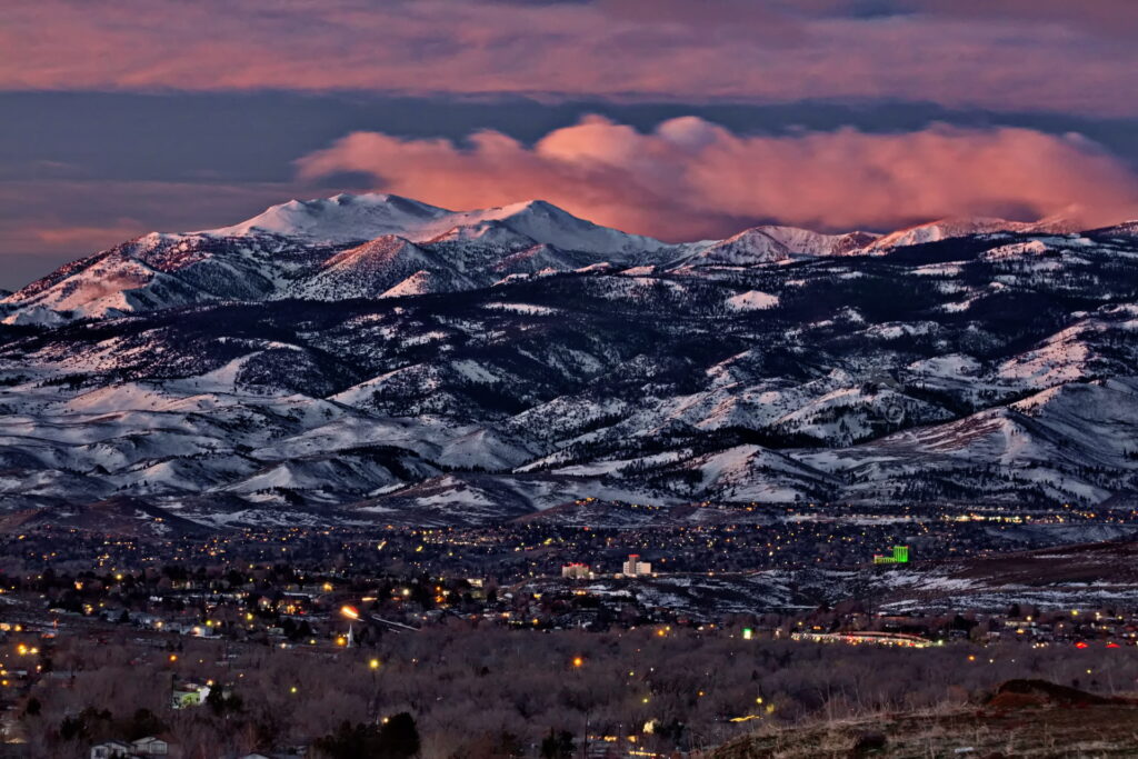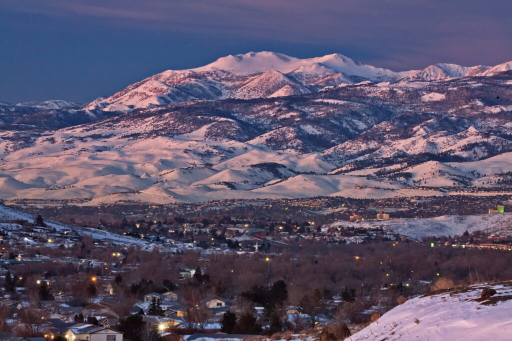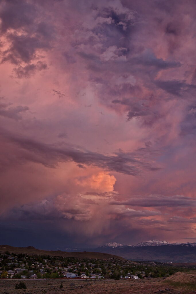 Above: Rose’s face (summit of Mt. Rose) against a purple to lilac sky. Such dawn color pops only when the air is exceptionally clear. It lasts maybe two minutes.