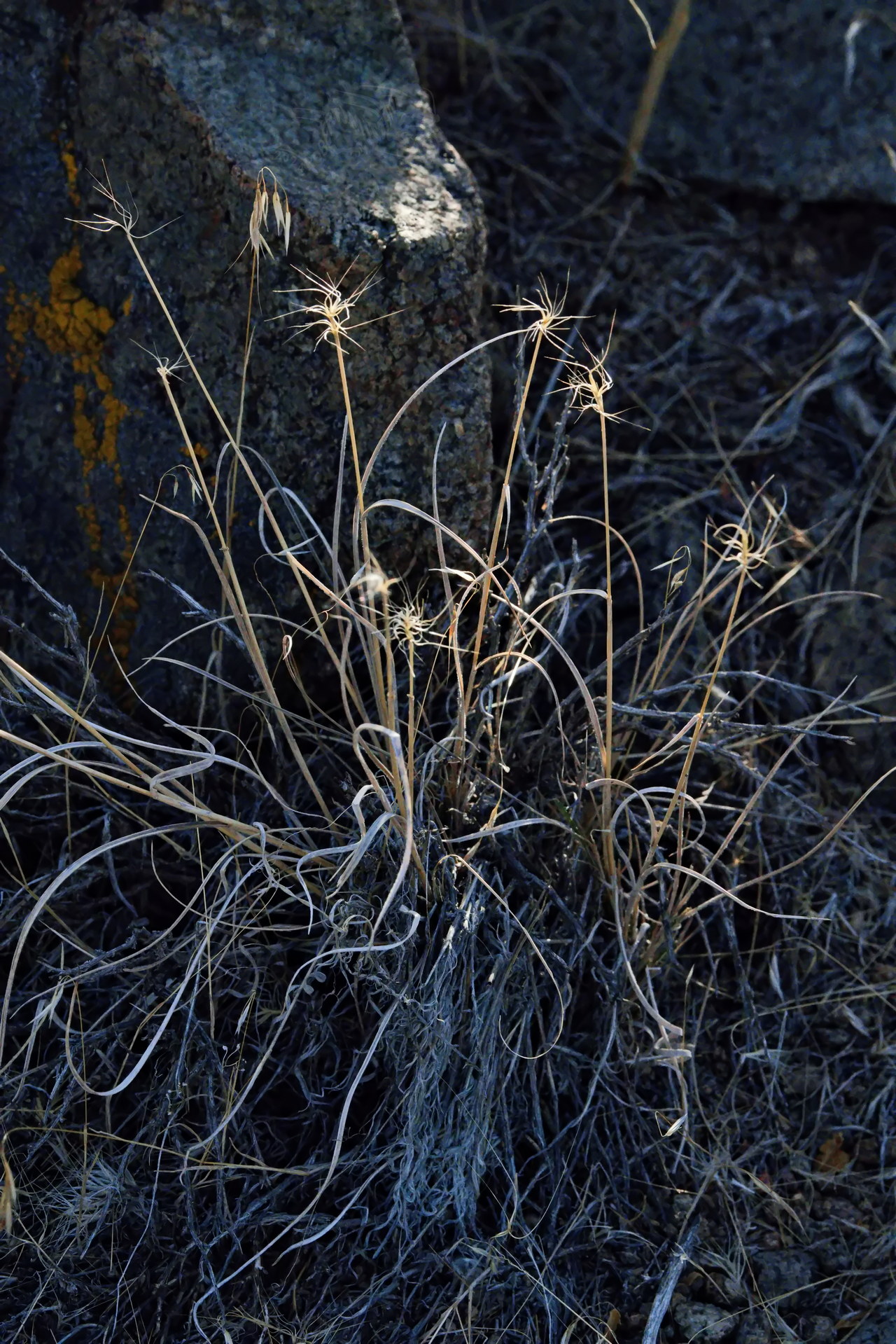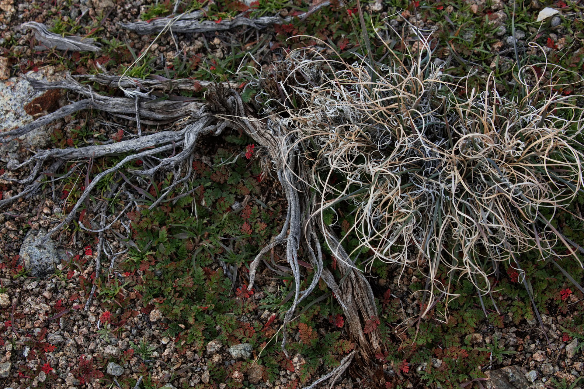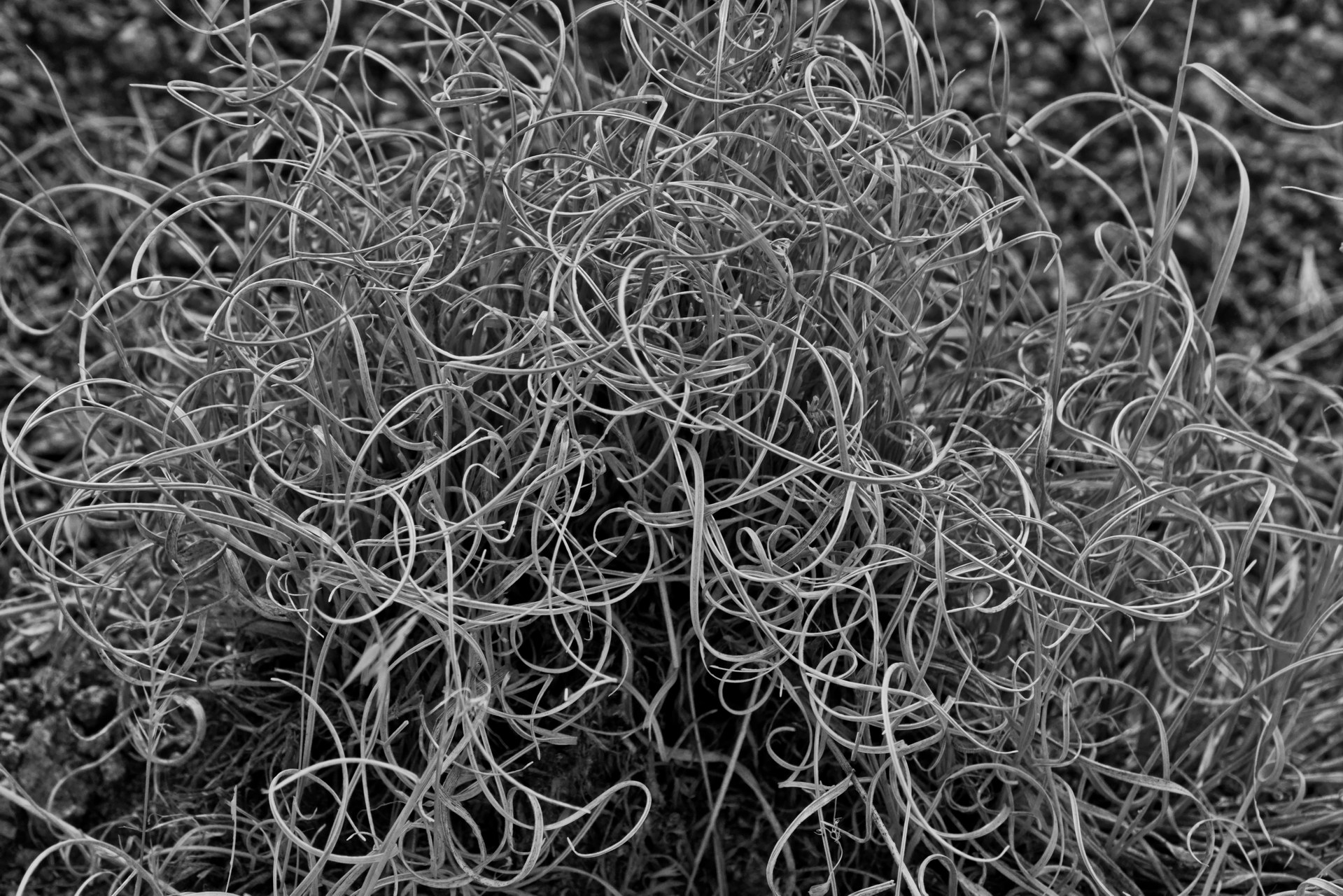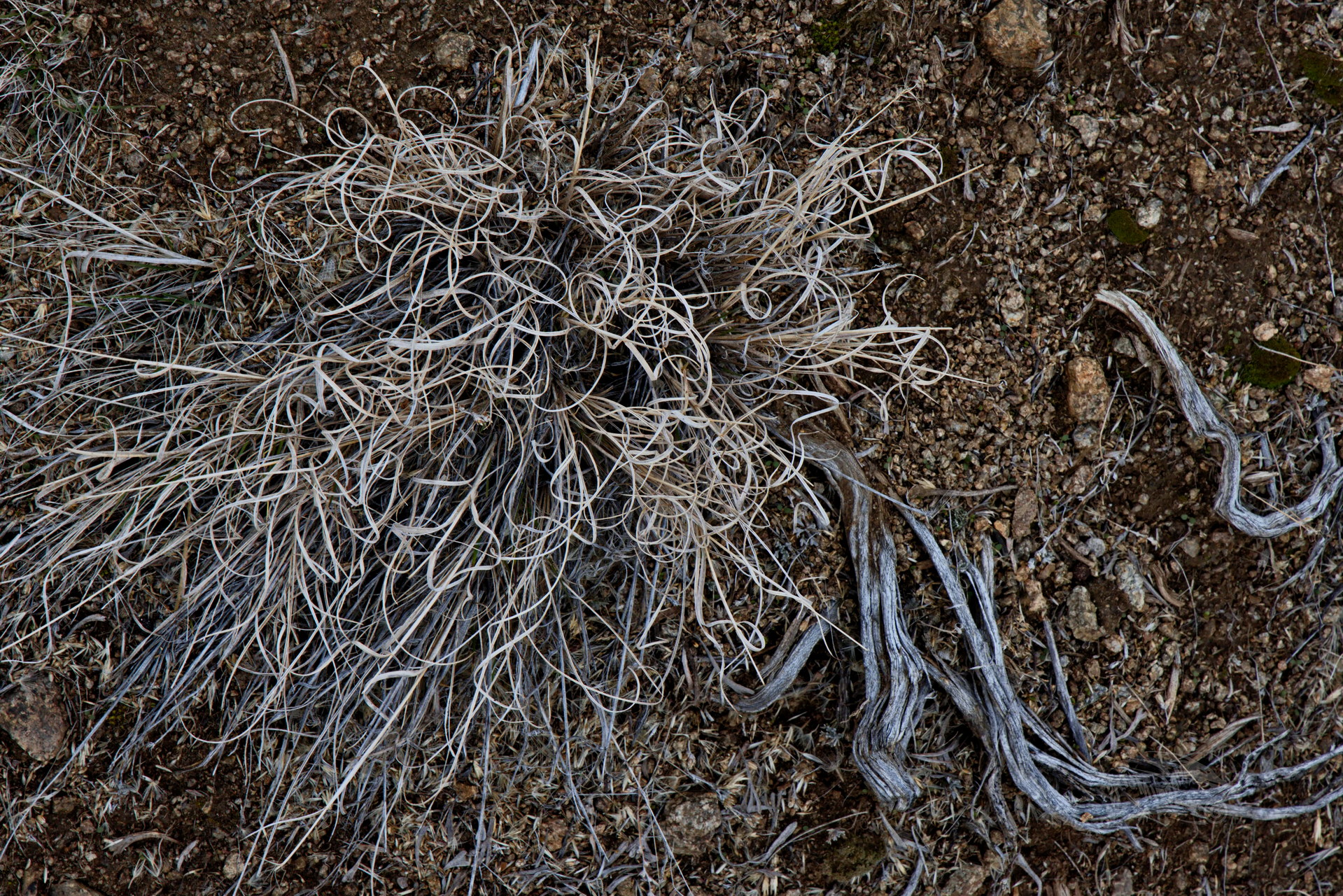 PICTURE: A sedge whose blades have desiccated into Christmas ribbons.