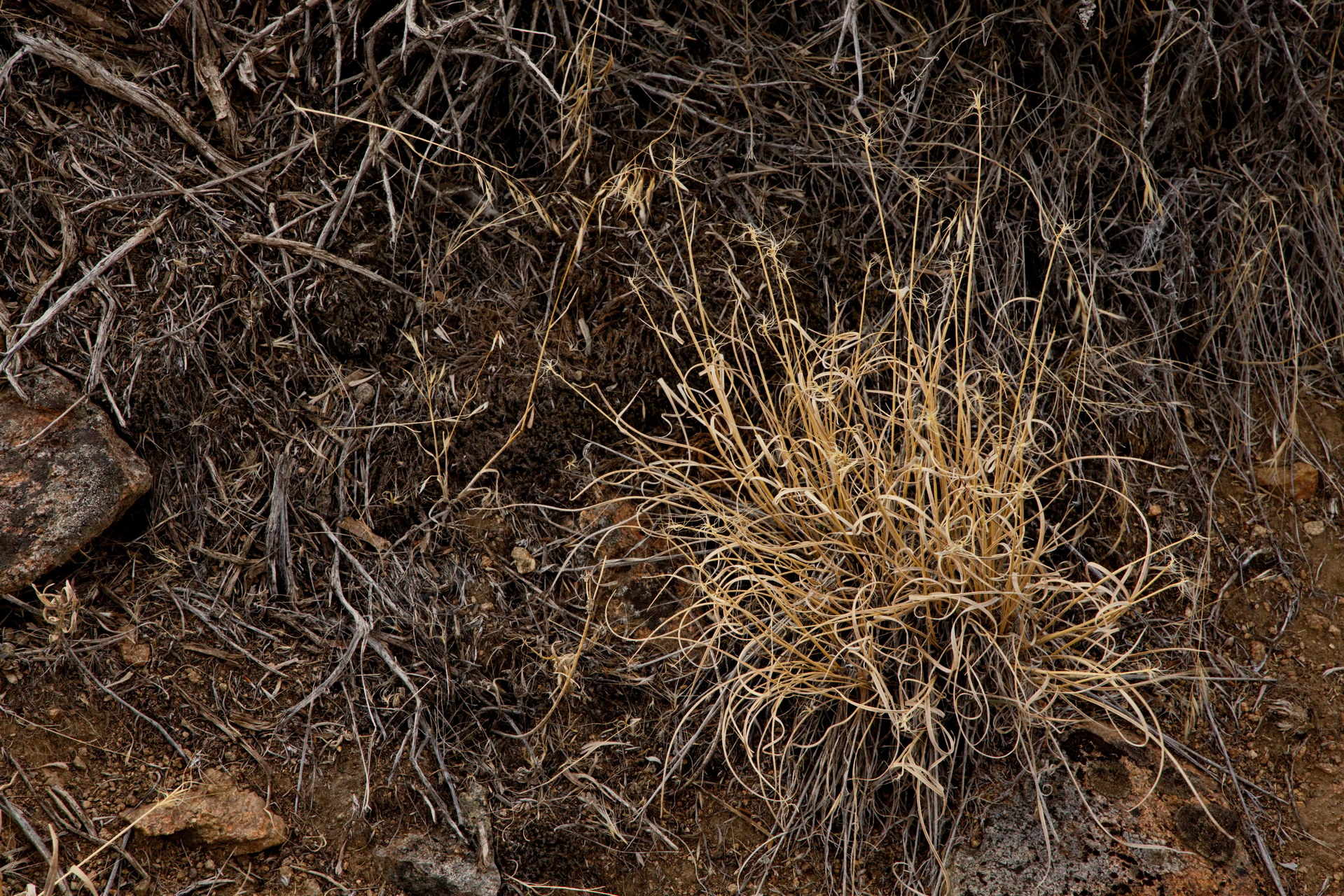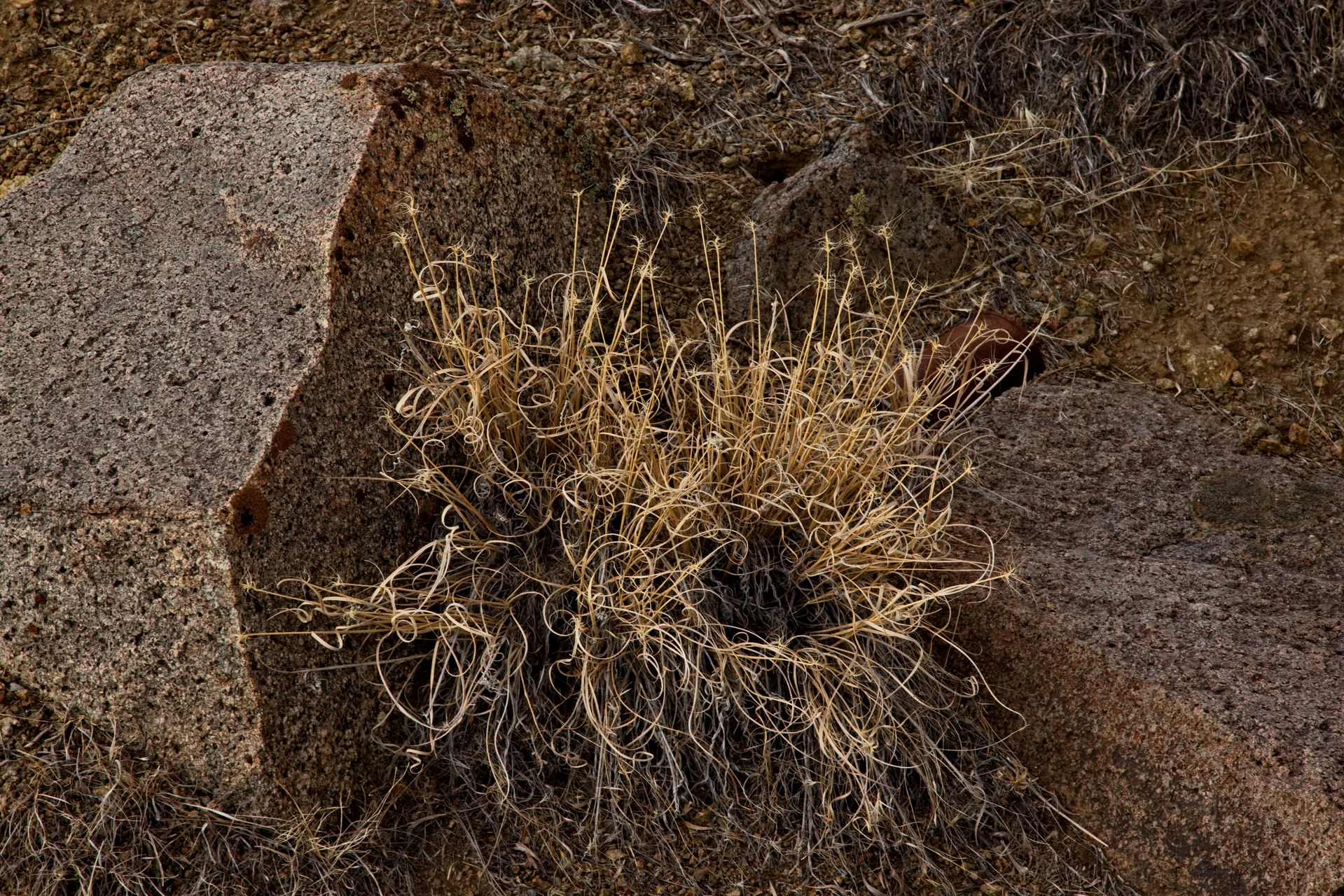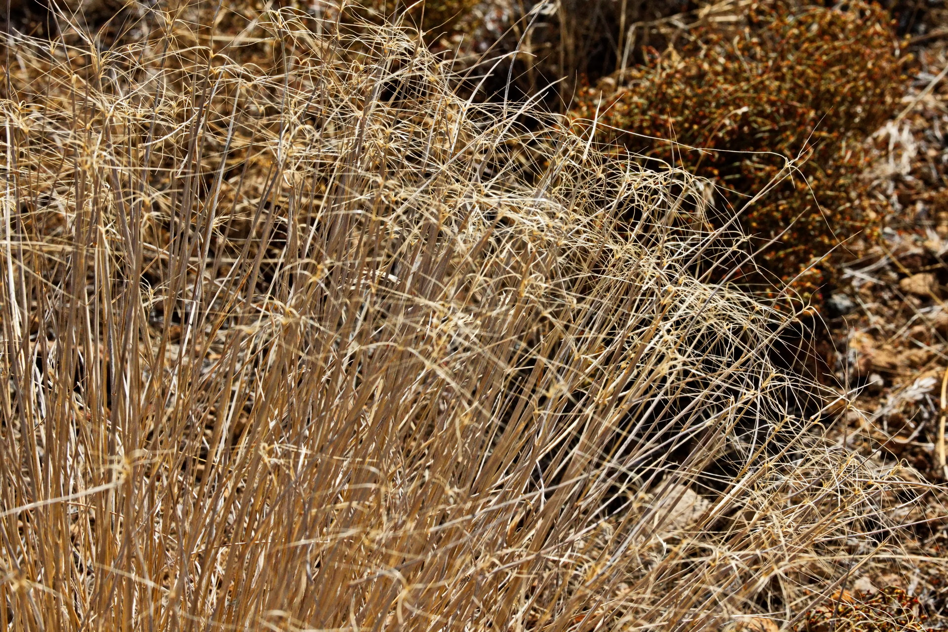 PICTURE: A sedge whose blades have desiccated into Christmas ribbons.