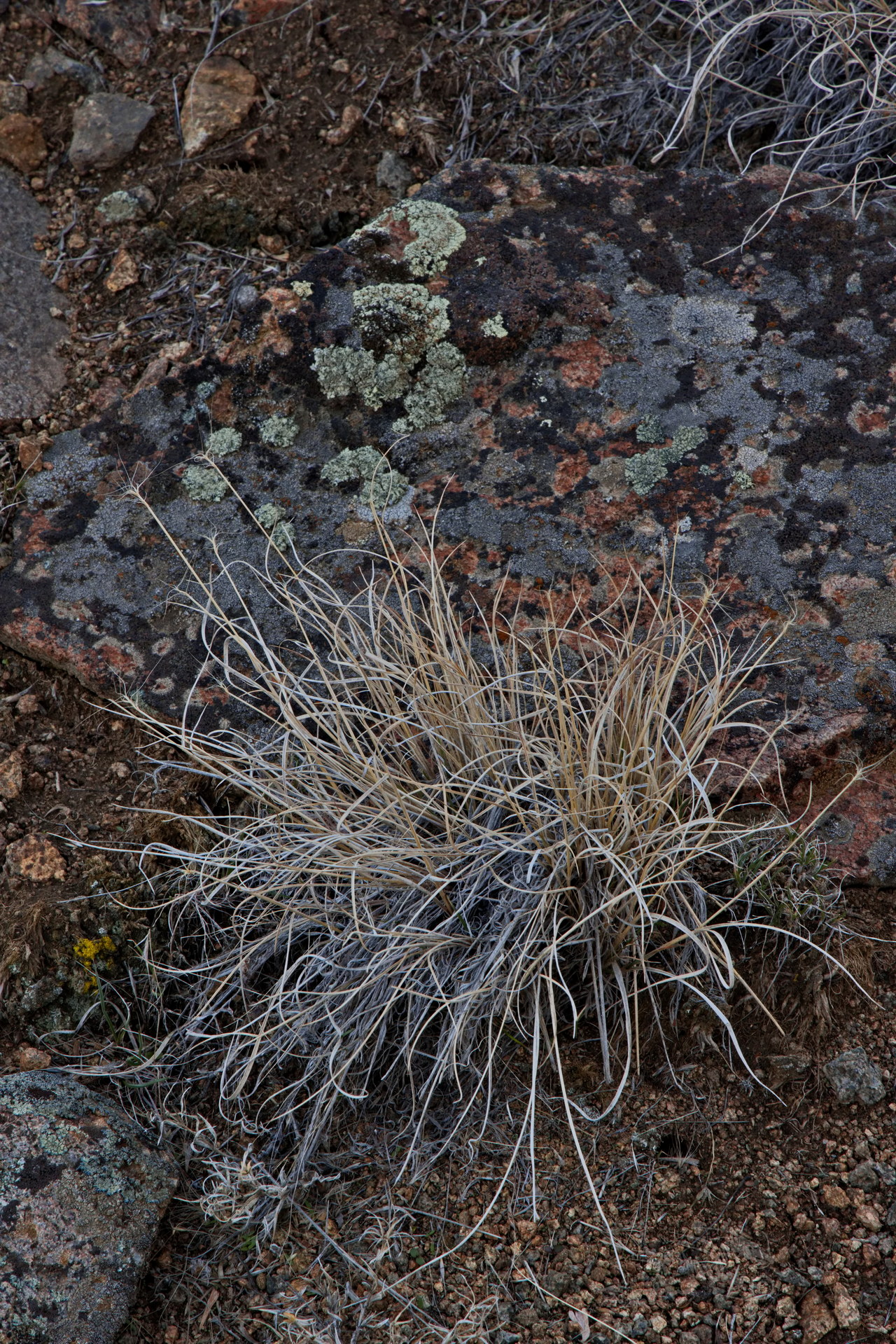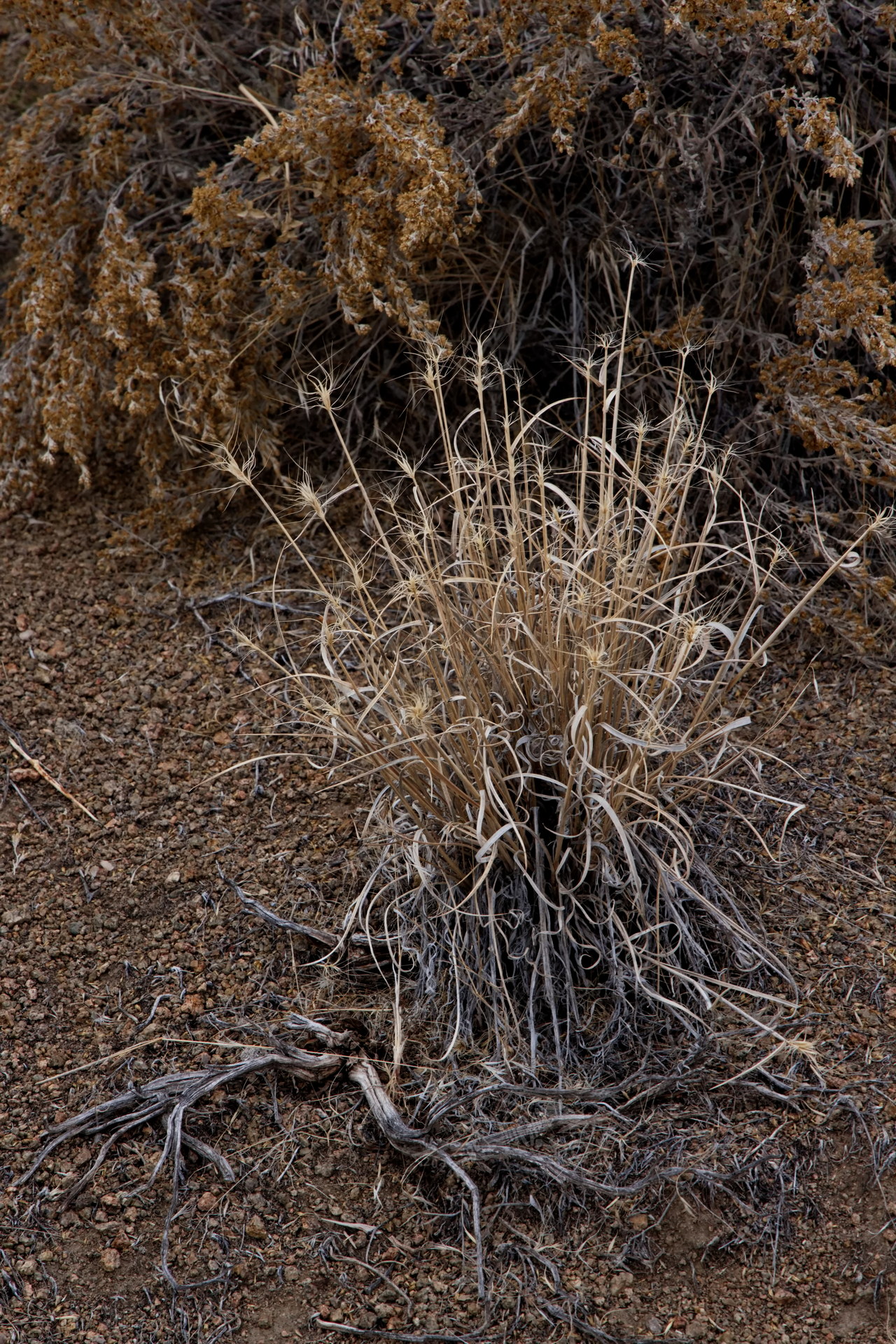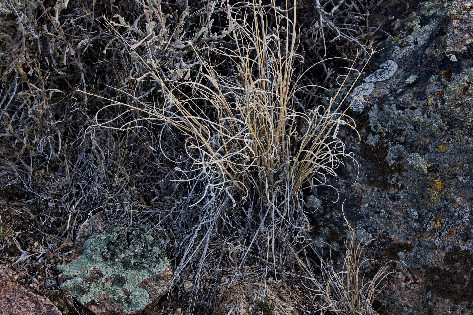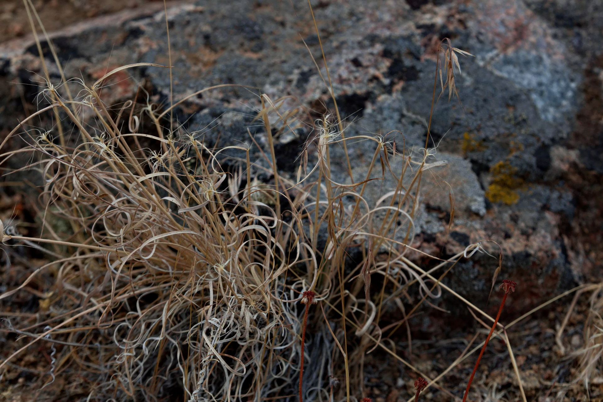 PICTURE: A sedge whose blades have desiccated into Christmas ribbons.