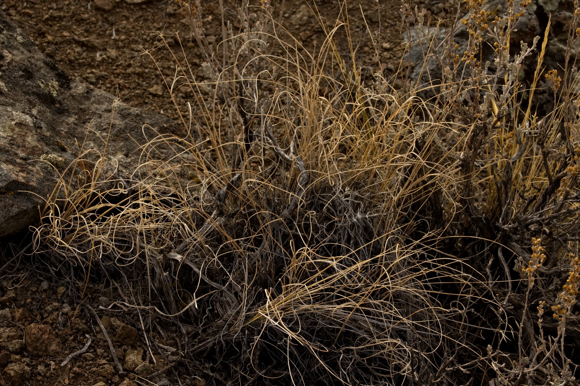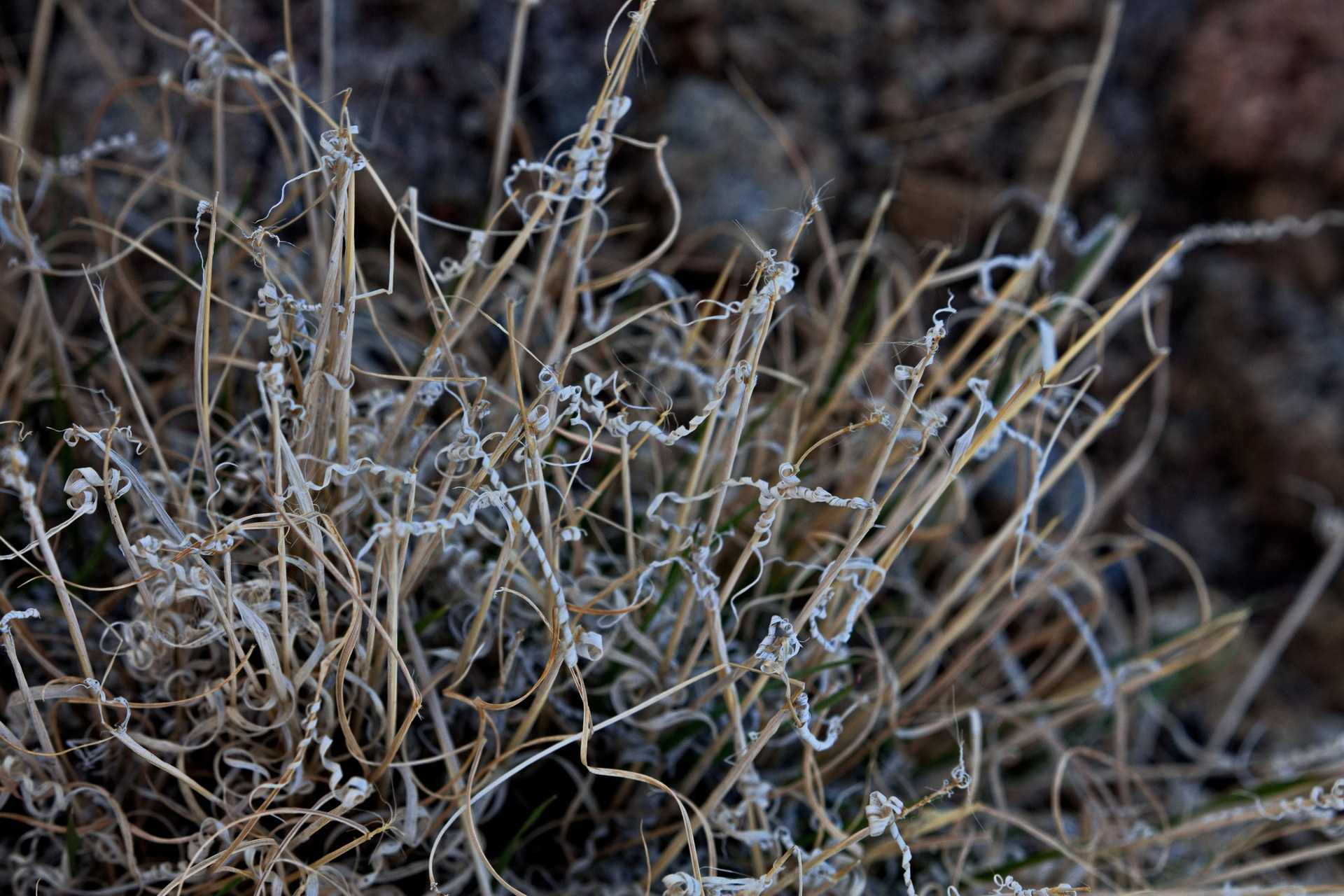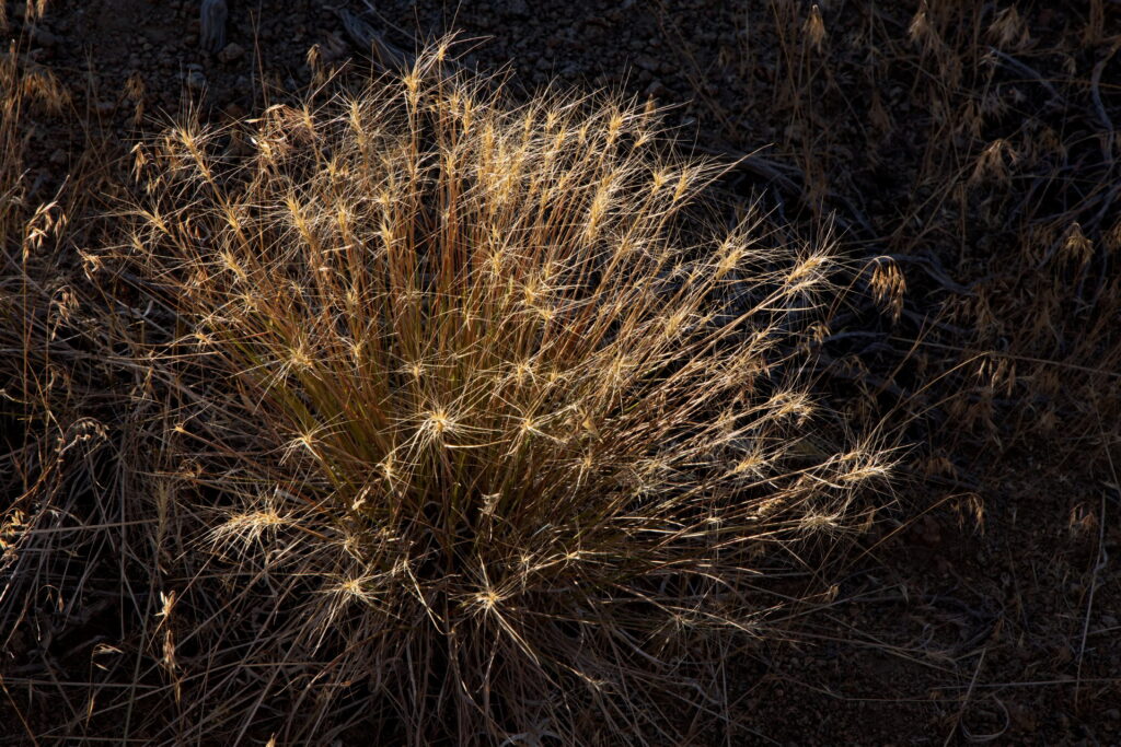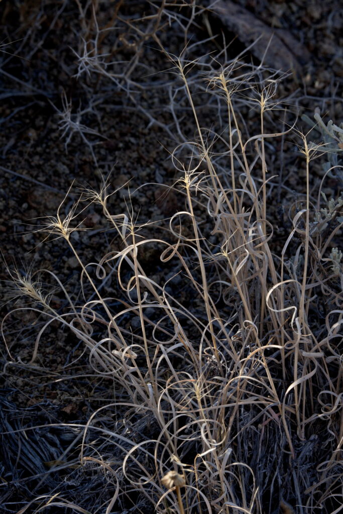 But in the desert’s arid winter, desiccating grasses bend and twist on themselves. They dry into amazing symmetries, complexities, and exquisite designs.